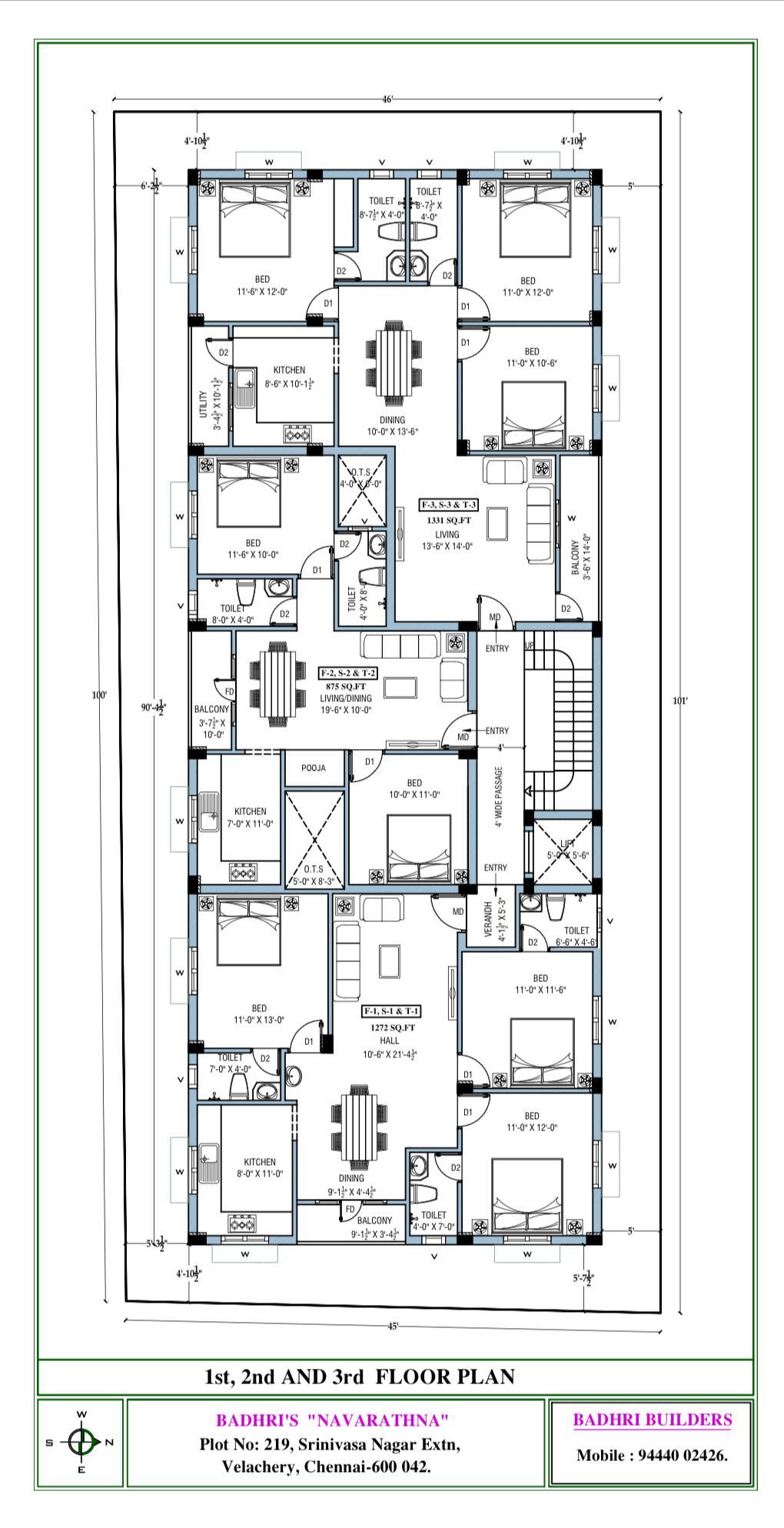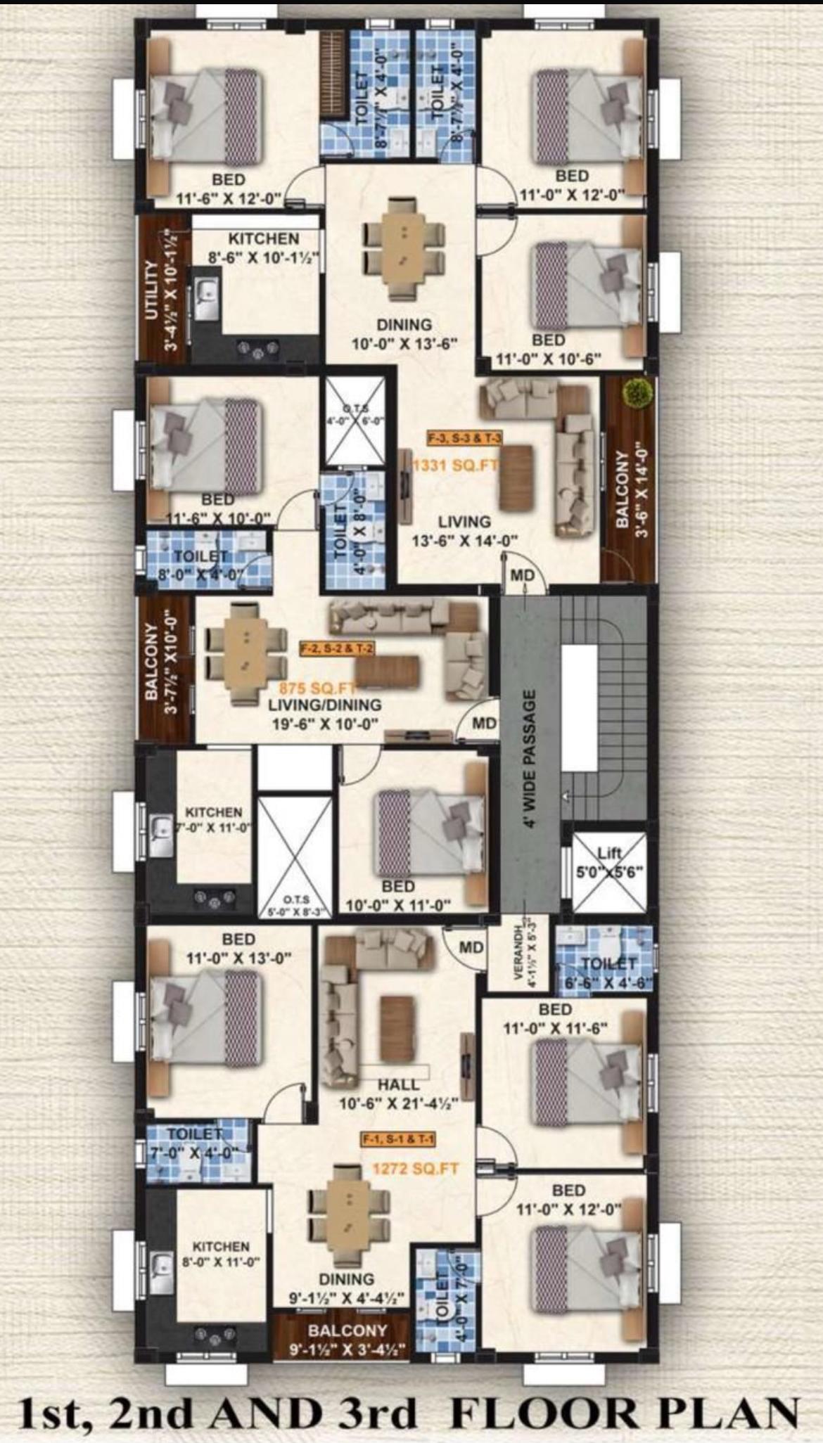 875-1331 Sqft | Flats*Easy Main Road Excess